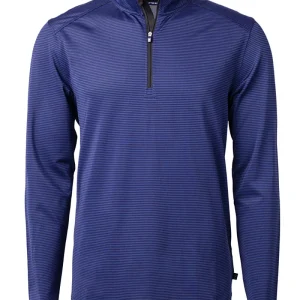 2024 Cutter & Buck Virtue Eco Pique Micro Stripe Quarter Zip – Tour Blue/Black