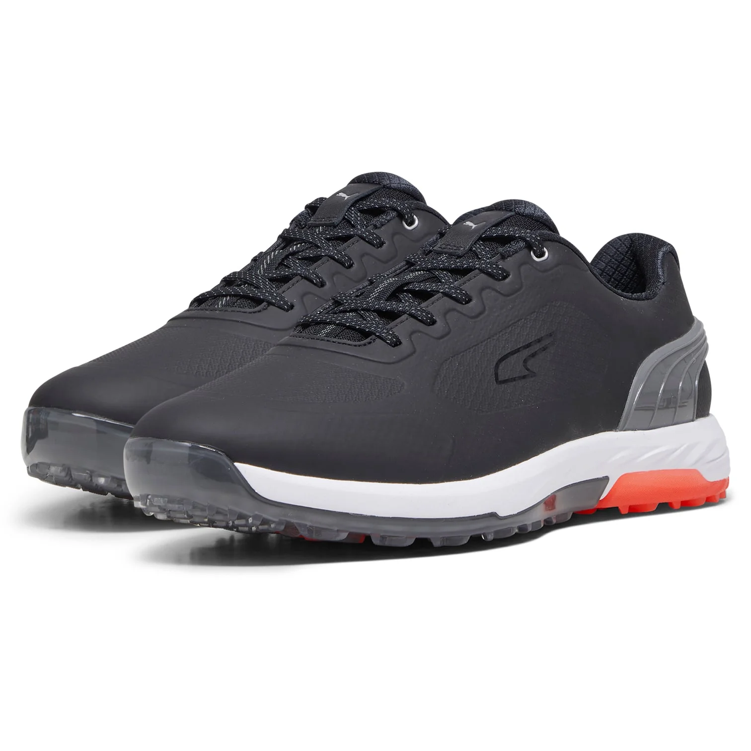 Puma Alphacat Nitro Golf Shoes. Explosive power fuelled by Nitro foam. A spikeless shoe with premium cushioning that provides explosive energy and propulsion with each step. With the new Alphacat Nitro Puma continues to raise the bar in the spikeless golf shoe category, creating a fashion forward design with hi-tech materials and