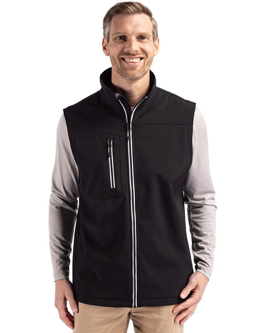 Made from 15 GRS certified post-consumer recycled plastic bottles, the Clique Telemark Eco Stretch Softshell Mens Vest is a sporty everyday water-resistant vest for work and for representing your school, college, team or company. The must have, PFAS free, eco stretch softshell vest is constructed with waterproof rated 1000mm recycled polyester stretch softshell bonded to a recycled polyester micro-fleece interior for all day comfort. The year-round eco outerwear favorite includes a zippered chest pocket to keep your phone close at hand and two zippered on-seam pockets to keep your valuables secure.