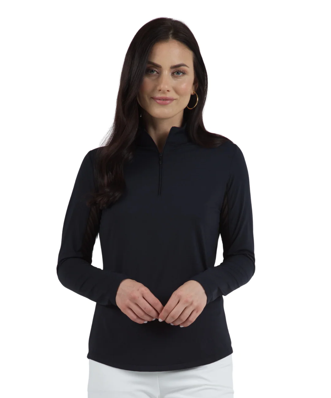 IBKUL Long Sleeve Zip Mock Neck features our patented IceFil technology fabric. It works by converting sweat to refrigerant; cooling your skin 3 to 5 degrees, allowing you to be cool, comfortable and dry on the hottest humid days. This garment also has built-in UPF 50 sun protection, moisture-wicking, and anti-microbial properties. This style has a mesh underarm panel promoting additional comfort and breathability. Wear the Long Sleeve Zip Mock Neck to all athleisure activities!