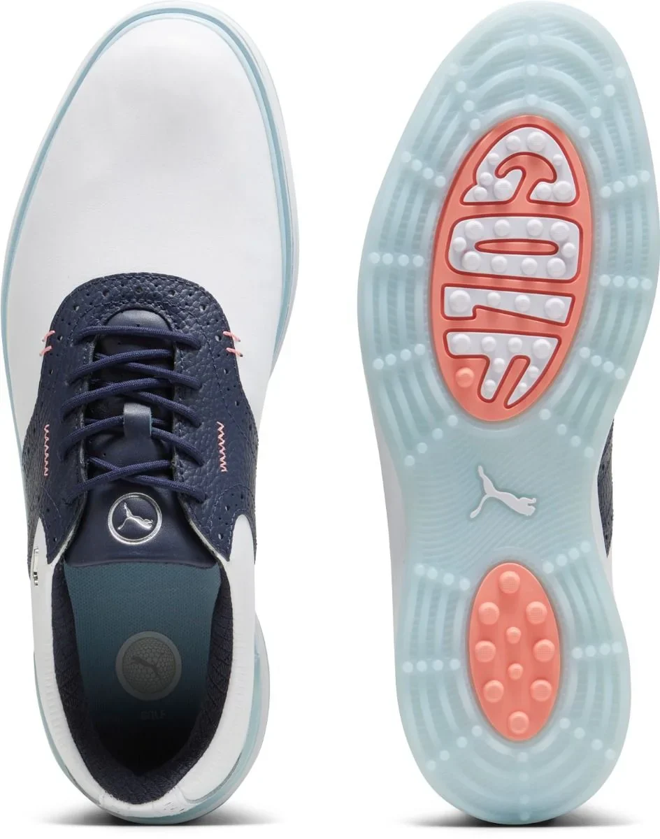 Featuring a waterproof, premium full-grain leather upper with broguing details, the PUMA AVANT Golf Shoes deliver a classic look and timeless style. The shoe’s Profit insole and Profoam midsole combine to provide exceptional comfort and energy return as you traverse the course while a TPU heel counter and welt stabilize the foot during the golf swing. On the sole, over one hundred and ten strategically placed traction elements keep you firmly planted and swinging with confidence.